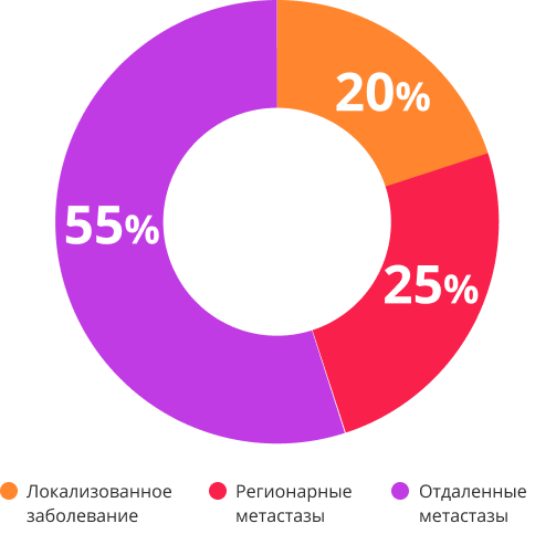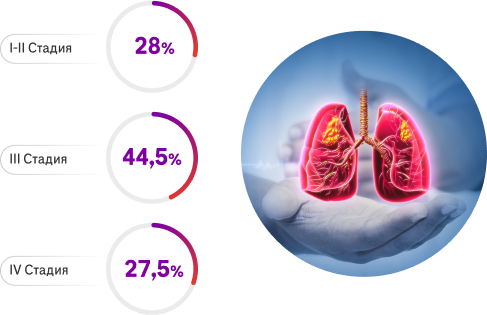 Около 55% пациентов с раком лёгкого получают диагноз уже на поздней стадии2