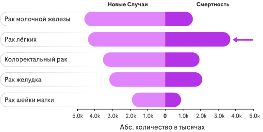 В 2020 году было зарегистрировано более 2 миллионов новых случаев рака лёгкого и 1,8 миллионов случаев смерти от рака лёгкого1